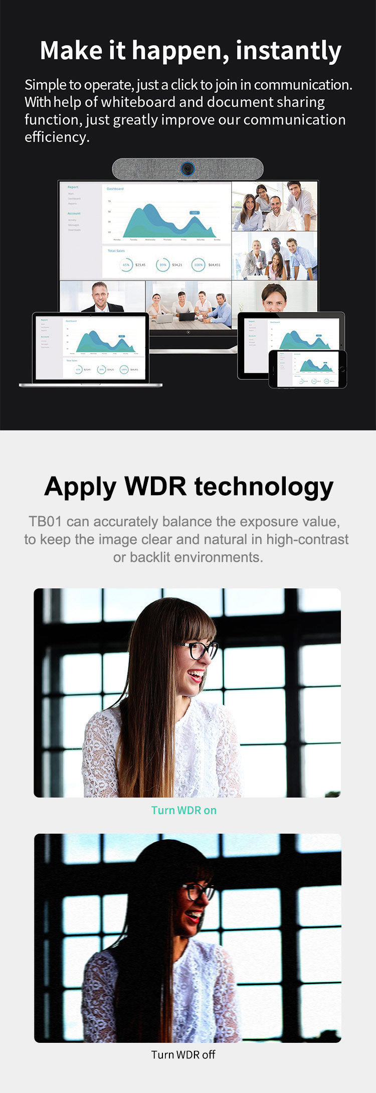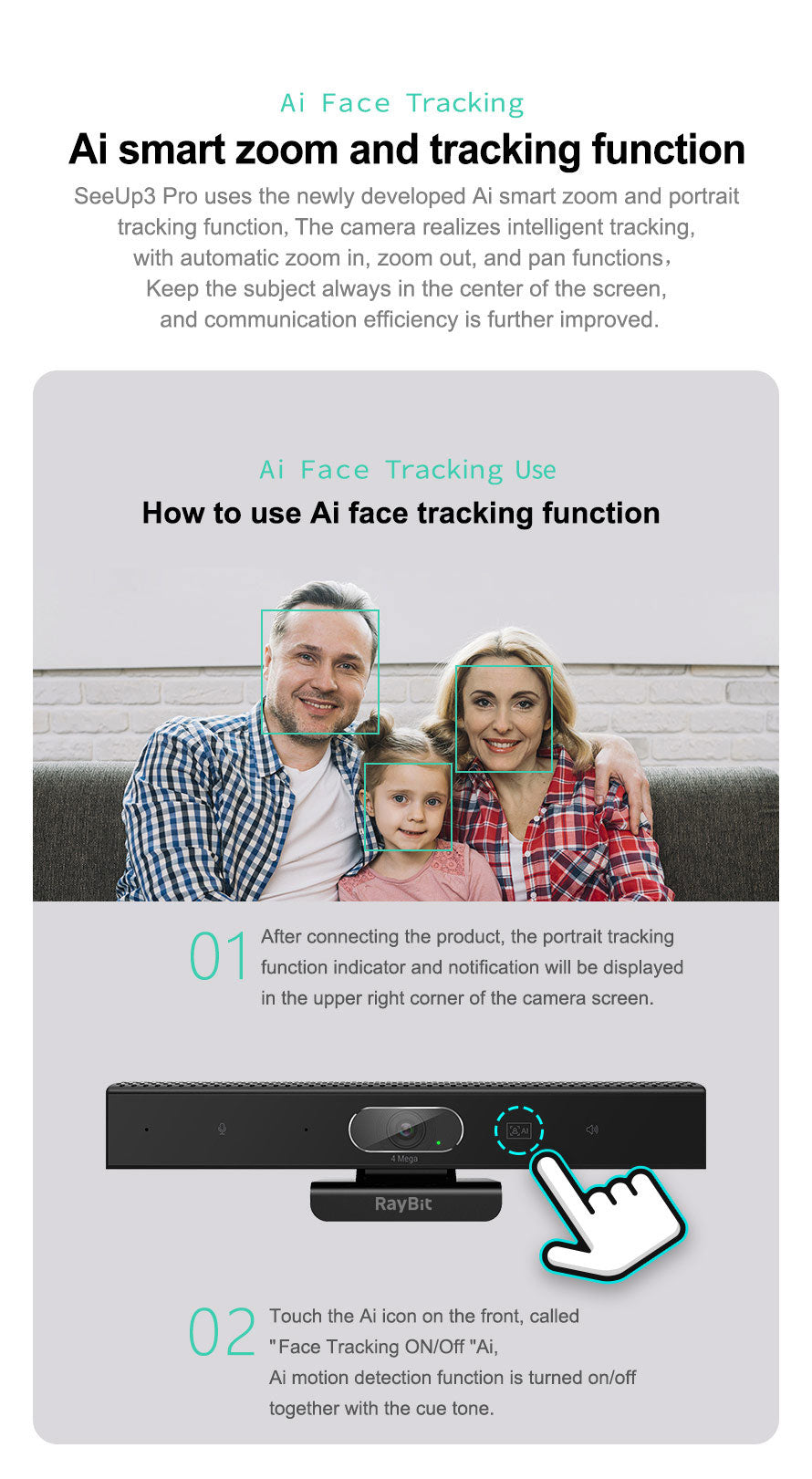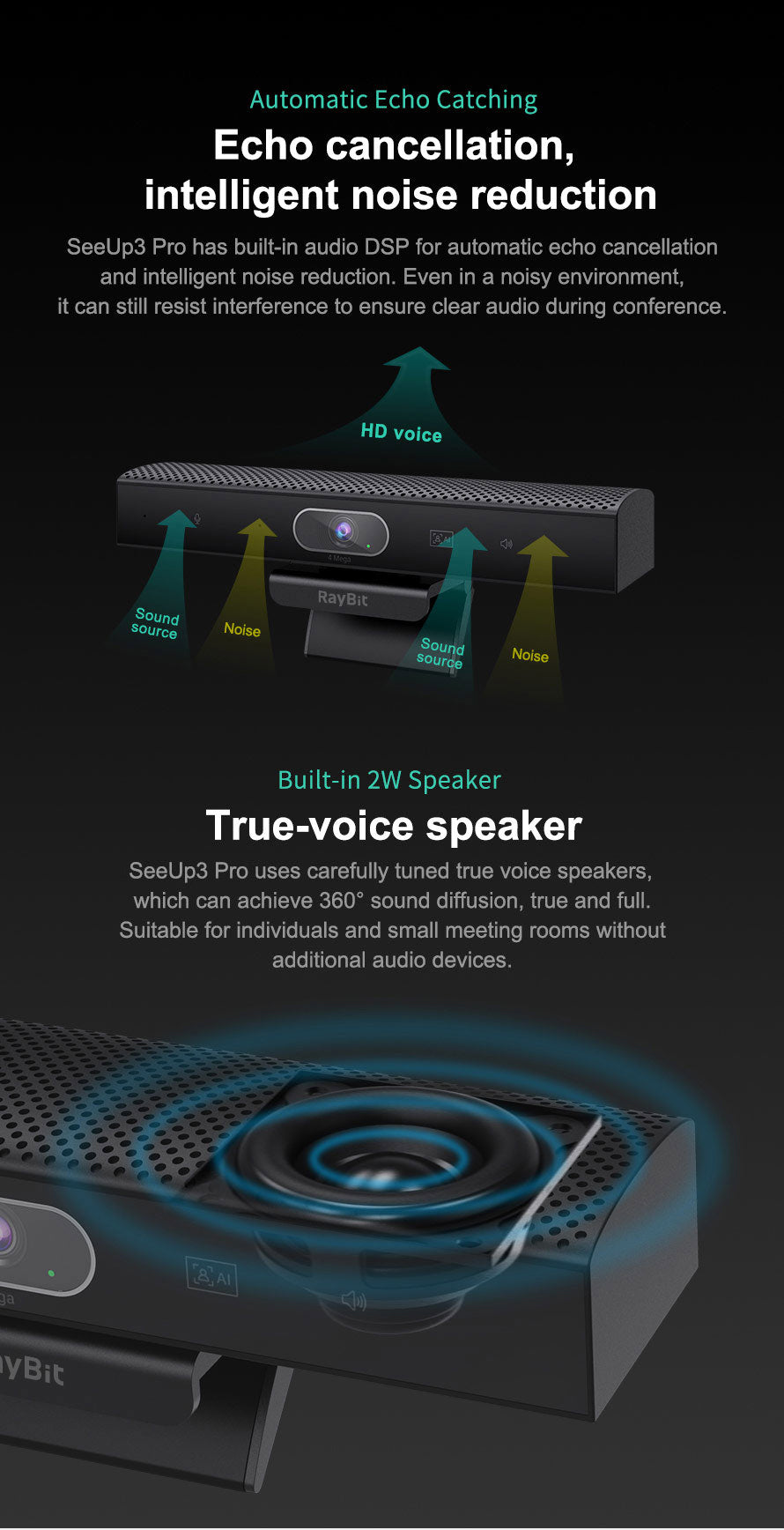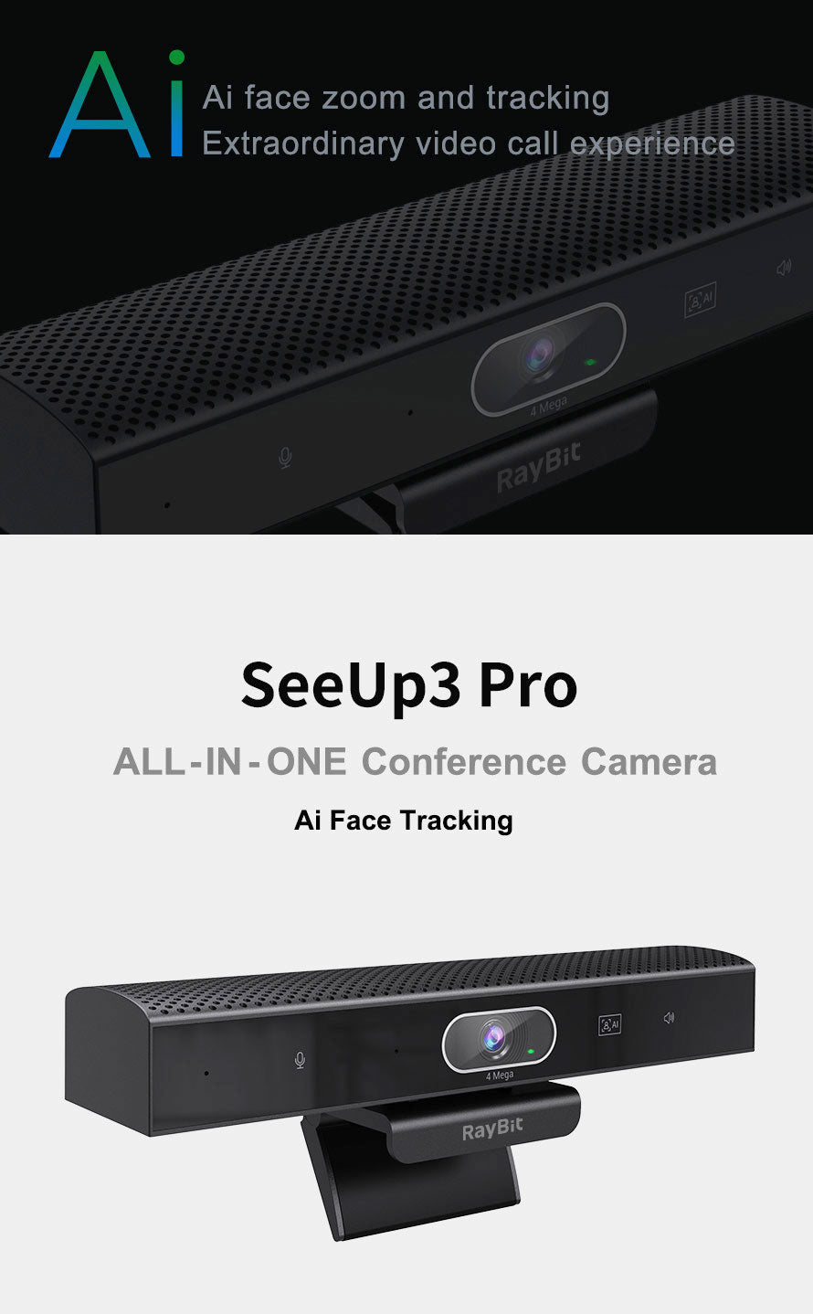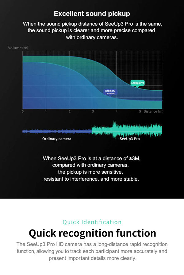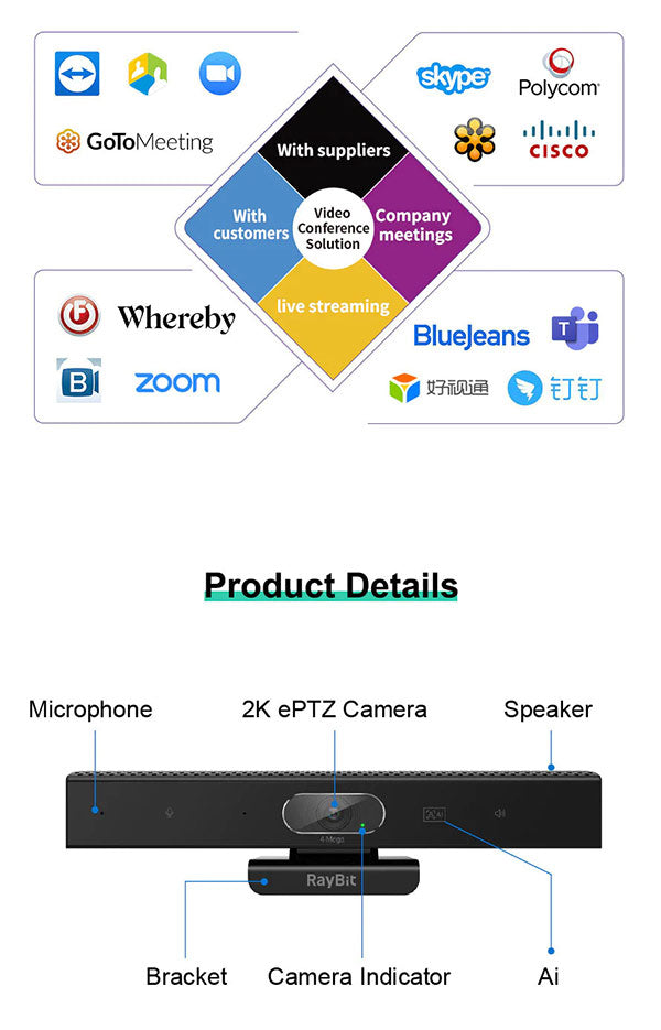 Ai:With auto framing and face tracking function,it accurately collects meeting scenes and positioning of figures Clear and natural, rich in detail.