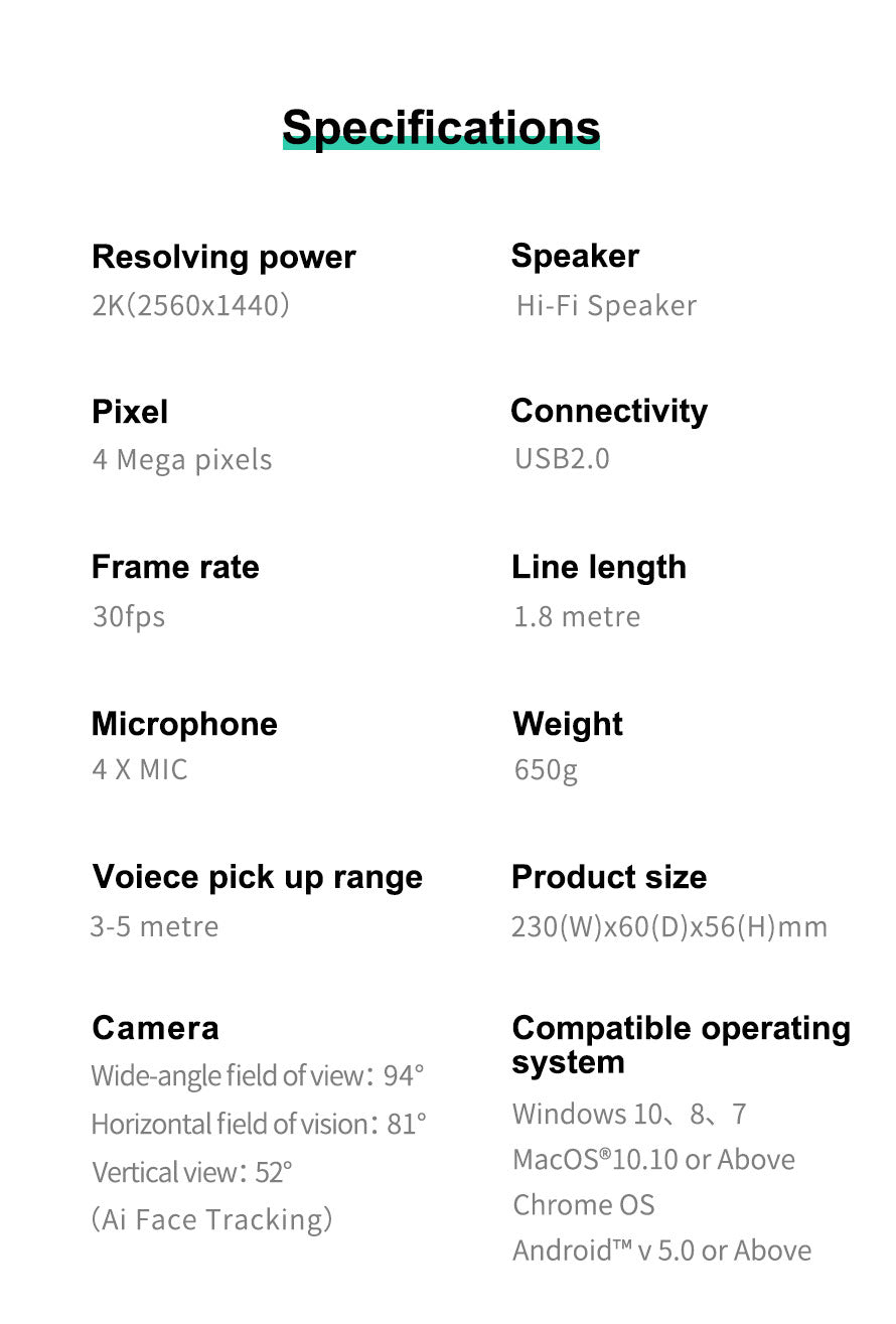 Works with most video conferencing applications:Compatible with most of video conferencing software app, like Skype for Business, Zoom, WebEx and so on.